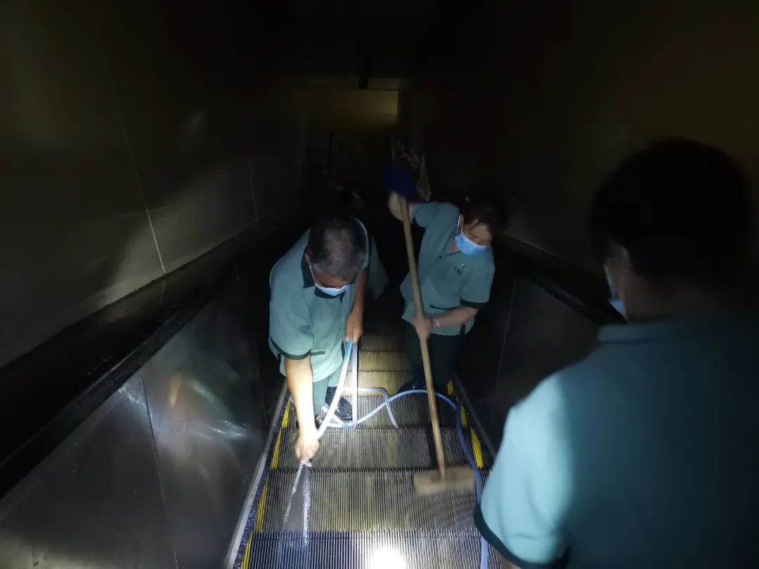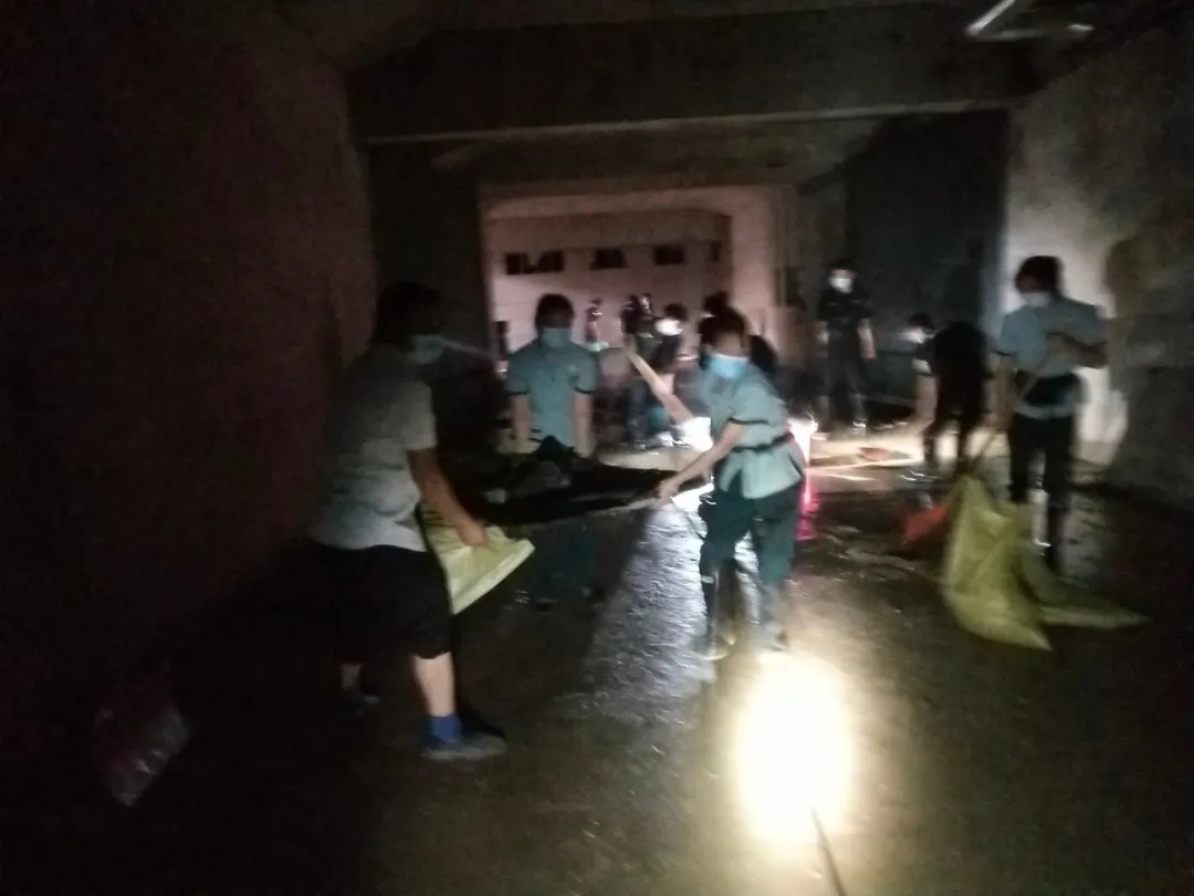 在沒(méi)有照明的情況下,對(duì)未建設(shè)完成的出入口清淤排污,他們不怕臟不怕累,卷起褲腿,踏進(jìn)厚厚的淤泥中,鐵鍬鏟泥,清水沖洗,將這里打掃的煥然一新。