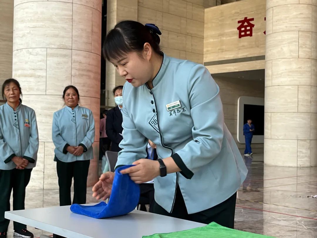 普通的毛巾在保潔大姐手中快速翻轉(zhuǎn),十六面使用1分鐘內(nèi)完整展示,分色管理應(yīng)用準(zhǔn)確、熟練。