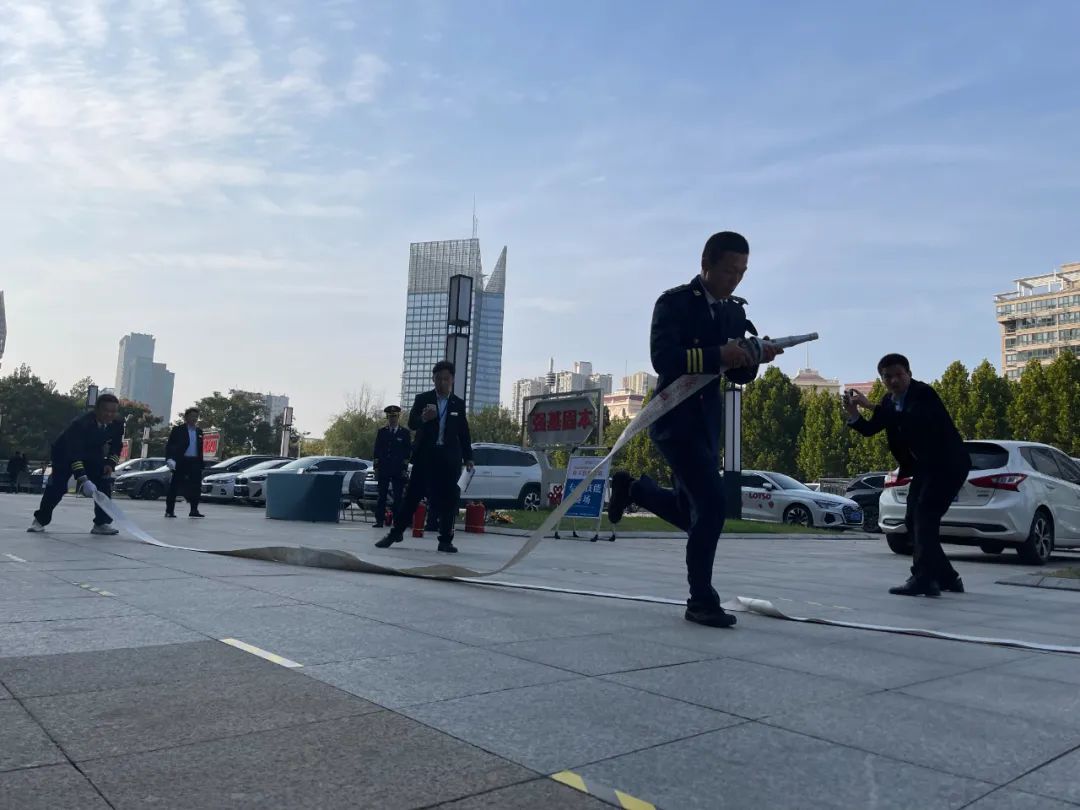 “專業(yè)技能”科目中,參賽選手正確演示拋接水帶,迅速完成三人接力賽。各隊(duì)伍分秒必爭,隊(duì)員間配合默契。